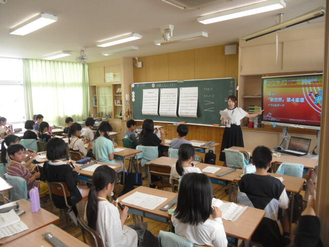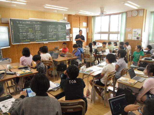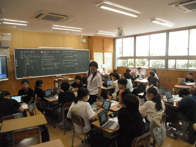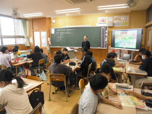 6年生の英語の学習の時間、合志中学校の英語の先生と一緒に学習をしました。