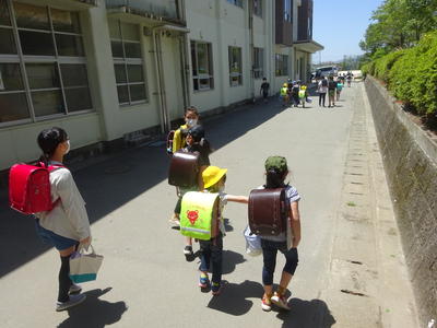 本日1年生の下校は、各地区の登校班長や副班長さんなどの上級生が、責任を持って1年生を連れて帰りました。低学年を安全に下校させるために声をかける上級生はとてもたくましく見えました。