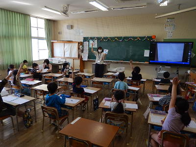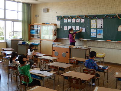 5年生は新出漢字のミニテストを行い、家庭学習の成果を確認していました。さすが5年生! 家庭学習でしっかり学習をすることができているようでした。