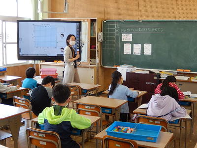4年生の算数では「折れ線グラフ」の特徴について、気づいたことを出し合っていました。傾きの角度の違いや1目盛りの大きさなどに目を向けていました。