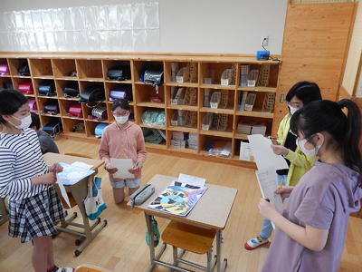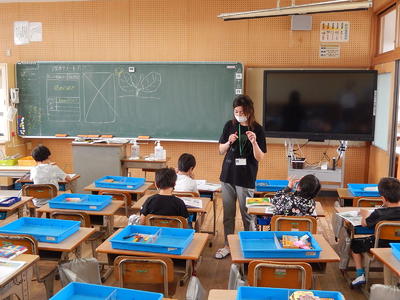 1年生は「ひらがな」の言葉集めや文字の練習をしていました。「ち」の付く言葉は?の質問に「ちくわ!」と元気に発表していました。