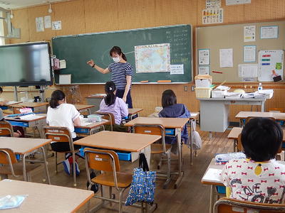 教室では3密を避けるために、換気を十分に行い、座席も離して過ごしました。また、休み時間は友だちとたくさん会話を楽しむことができ、コロナ禍のストレスが少しは解消できたようでした。