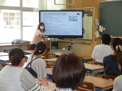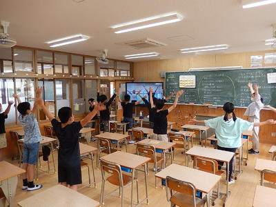 6年生は学校ホームページに公開されている「空気をたくさん吸う運動」を実践していました。ノリノリでリズムをとり、楽しく運動できました。