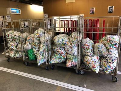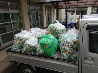 ボランティア委員会が毎週朝から集めて、こんなにたくさんのキャップが集まりました。