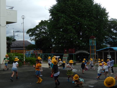 辺り一面のシャボン玉に囲まれて、ひさしぶりの外での活動を楽しんでいました。