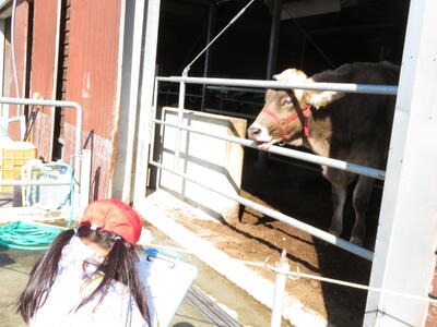 2年生が見学旅行で西原村の阿蘇ミルク牧場に出かけました。