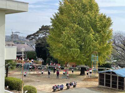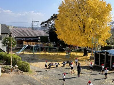 イチョウの葉もいっきに色づき、子どもたちも黄色のじゅうたんを楽しんでいます!