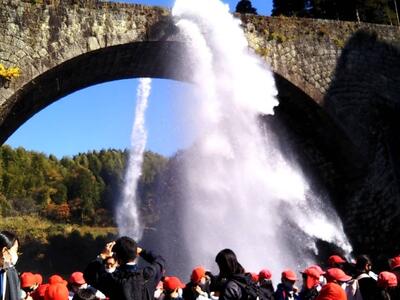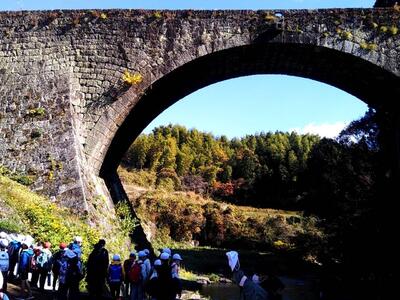 4年生は、見学旅行で通潤橋と緑川ダムに出かけました。