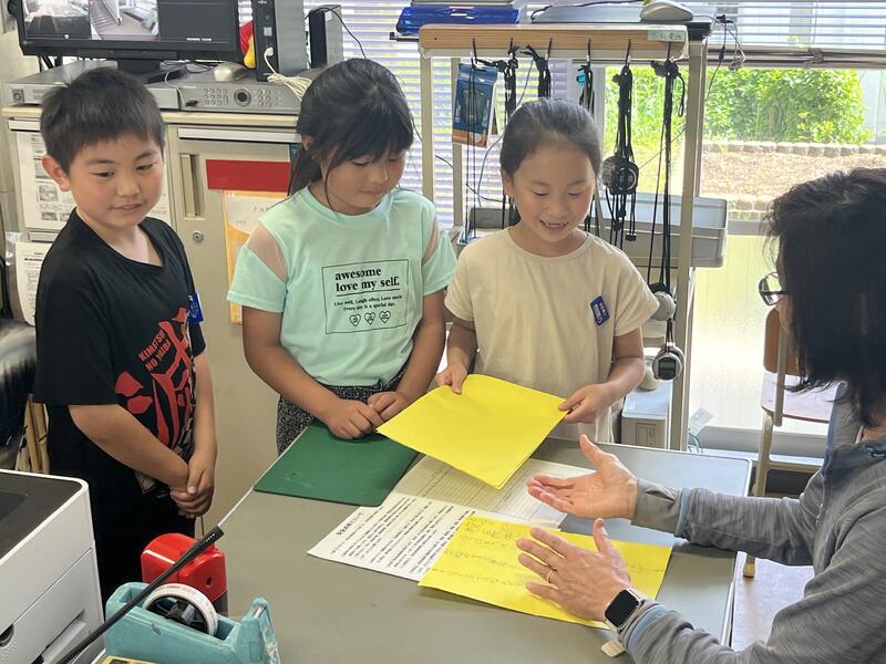 3年生の児童が、校長先生にインタビューのため職員室に来ました。