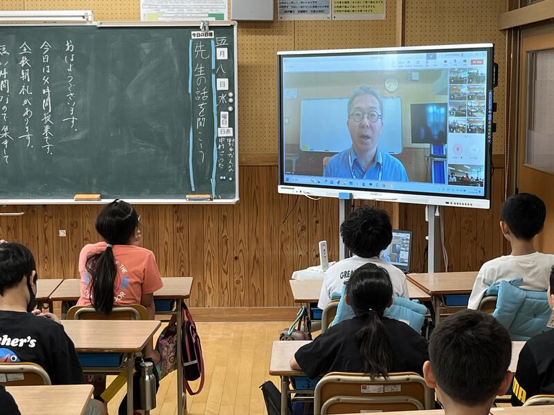 教頭先生へ「どんなお仕事をしていますか」など、インタビューをしていました。
