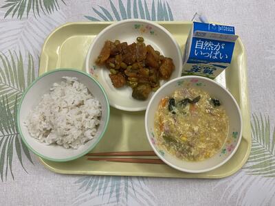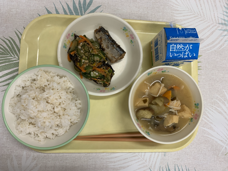 9日は重陽の節句と言うことで、秋が旬のなすや菊の花が入った給食です。なすは「9つの日に食べると中風(脳卒中)にならぬ」と言われ、病気になりにくくなるという言い伝えがあるそうです。