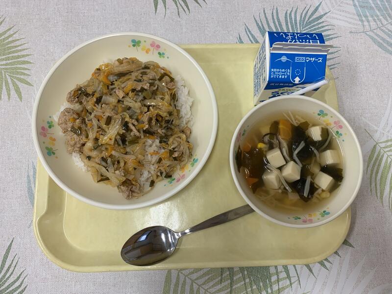 今日はしっかり味の豚キムチ丼でした。金曜日の疲れも吹き飛ばしてくれそうです。しっかり食べて元気な体をつくりましょう!