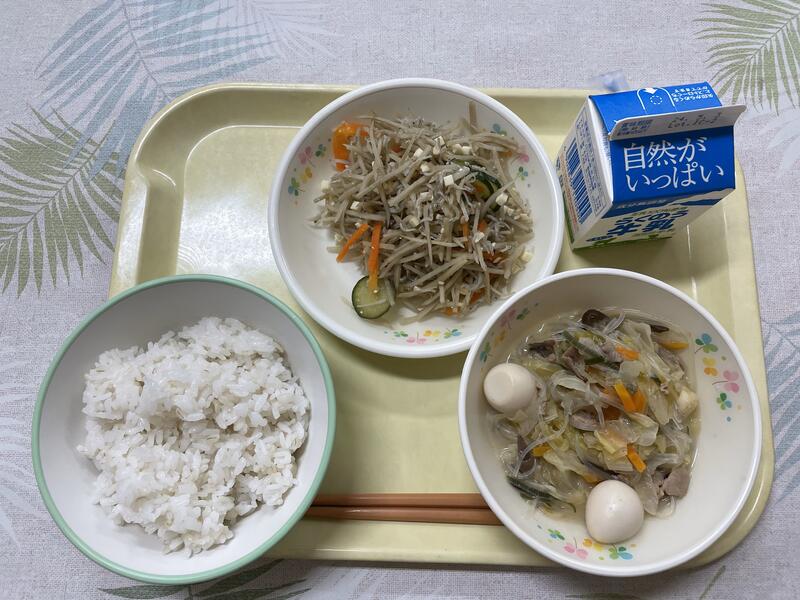 今日はカミカミメニューです。ごぼうには下味をつけて、食べやすくしています。かみごたえがある食材なので、しっかりとかむことを意識しましょう。
