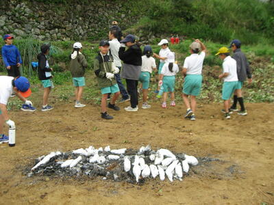 今回は、先日収穫した芋を焼き芋にして食べました。