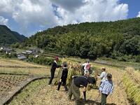 子供たちは協力しながら稲を刈り、結んで、稲架掛けも行いました。