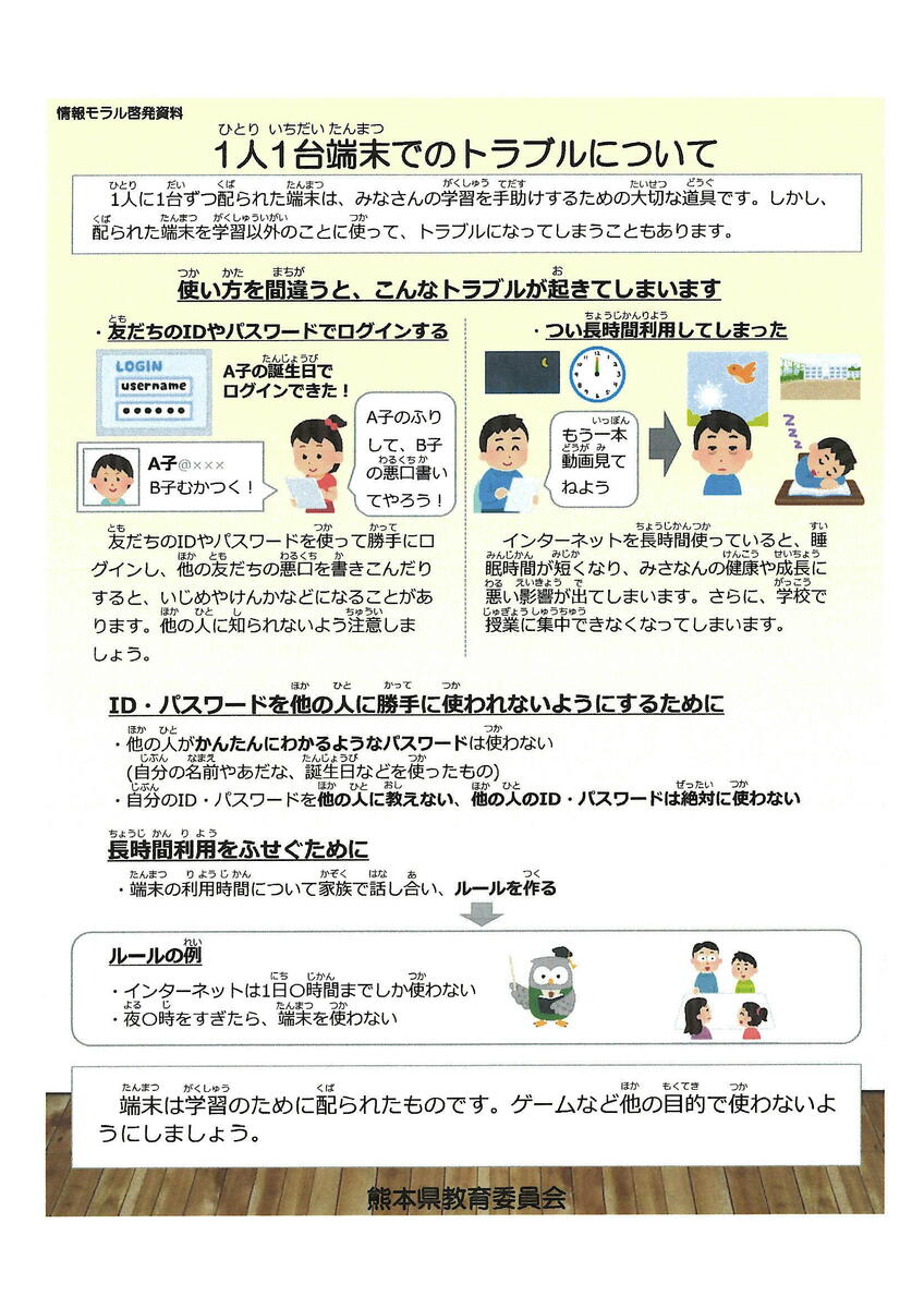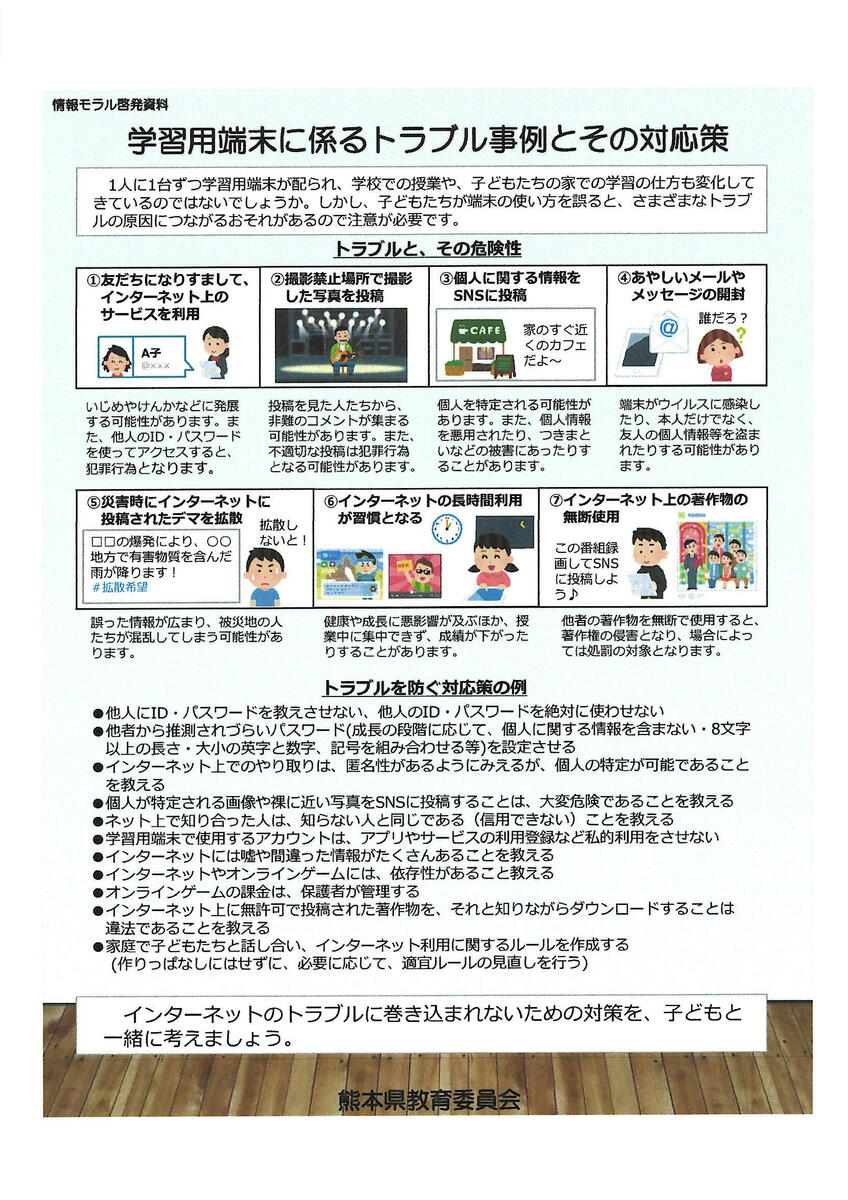明日から冬休みということで、情報モラル教育についての資料を添付しています。