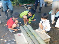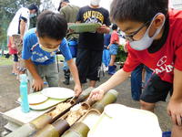 火をおこして竹ご飯づくり