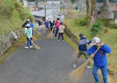 高学年は愛林館周辺、中学年は旧久木野中学校下の坂道を清掃しました。