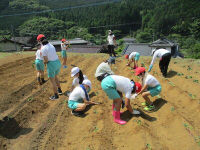 地域の方々のおかげで、今年も芋の苗植えを行うことができました。