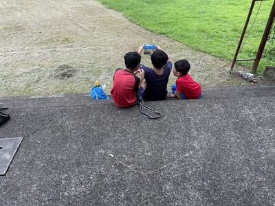 晴れて暑かったので、水で涼みながら楽しく活動していました。