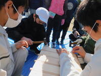 高校生に教えてもらいながら、釘打ちの体験もできました。