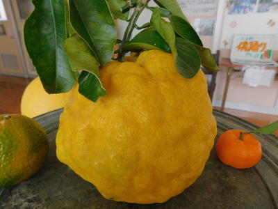 冬至の日に後援会長様よりジャンボ柚子をいただきました。