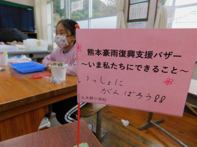 チャリティーバザーで得た義援金と復興応援の寄せ書きを届けにうかがいました。
