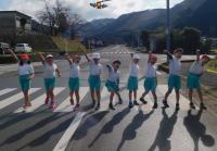 霜の輝く早朝から、子供たちの「あいさつ運動」を応援してくれているようでしたよ。