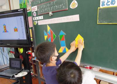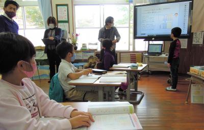 電子黒板を使い、子どもの学習リーダーを中心に授業を進めています。