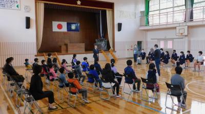 この贈呈式の様子はオンラインで各教室に中継されました。