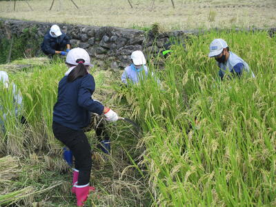今日、地域の方の協力のもと、稲刈りを行いました。