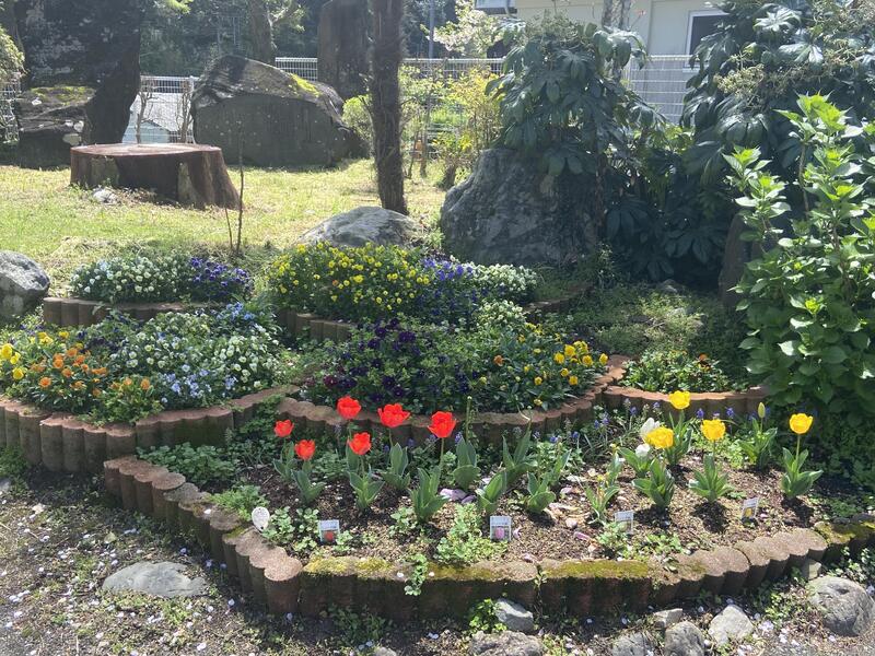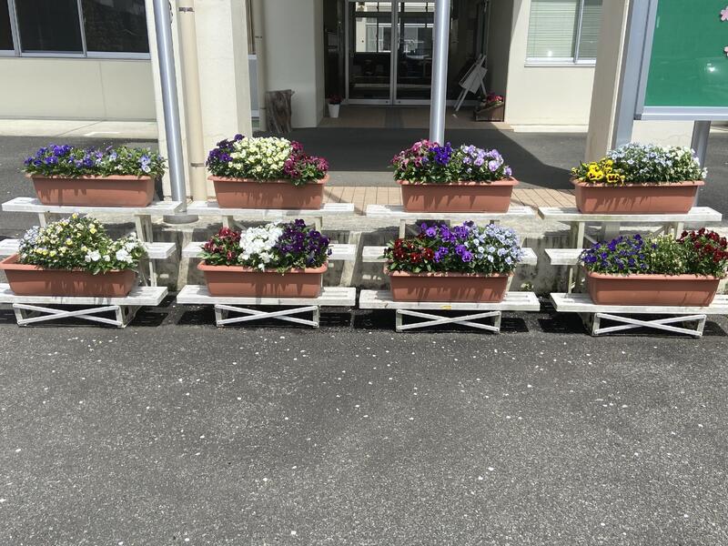玄関前、学校掲示板の横や花壇等、花が咲き誇り、新入生を含めて皆さんをお待ちしております♪