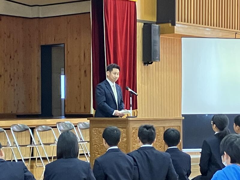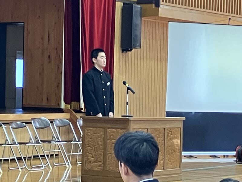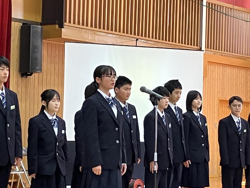 また始業式では、9年生による気合いとやる気に満ちた代表発表や、校長先生からの「やさしさにつつまれる球磨清流学園に」というお言葉がありました。