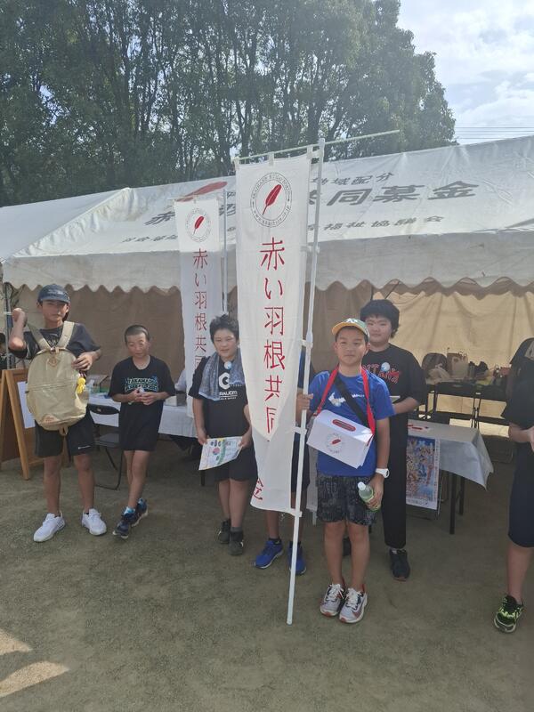 球磨村ふれあい祭りで「赤い羽根共同募金」