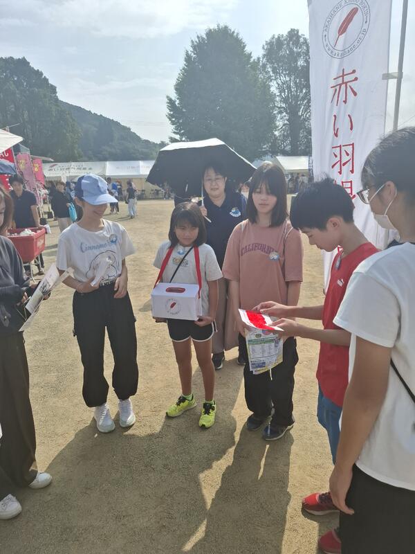 10月19日(日)に旧渡小学校跡地で実施された球磨村ふれあい祭りで、球磨清流学園の生徒が「赤い羽根共同募金」のボランティアを行いました。祭りに参加されている方々に、「募金をよろしくお願いします」と伝え、たくさんの方々から募金を頂きました。児童生徒にとって、よい経験になったと思います。