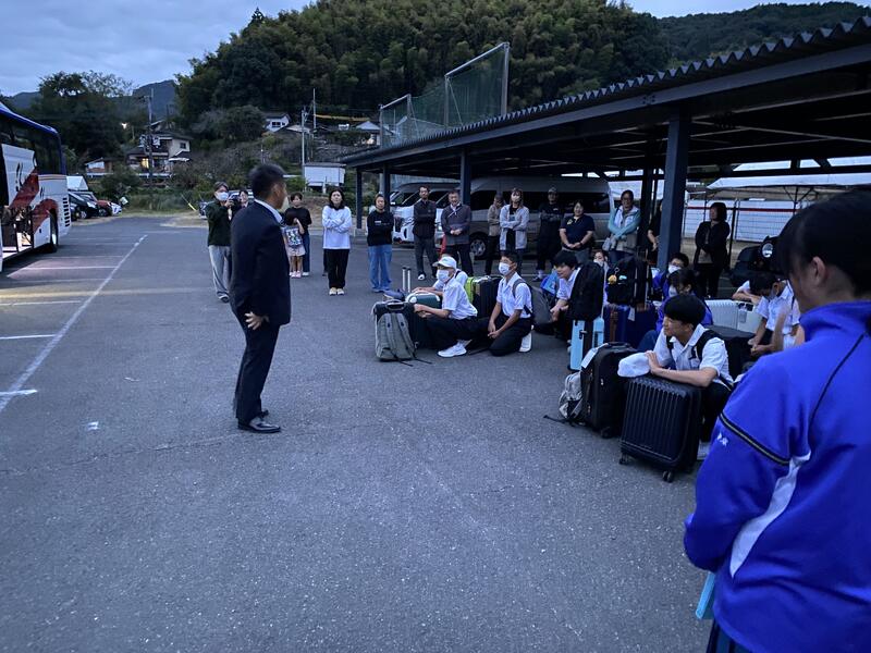 本日から8年生が修学旅行で沖縄に向かいます。6:05から出発式を行いました。現在は鹿児島空港に向けてバス移動中です。