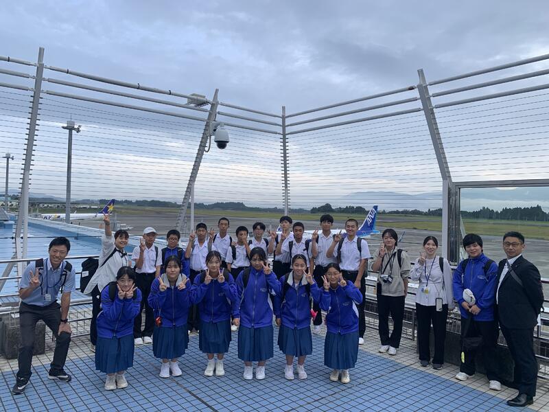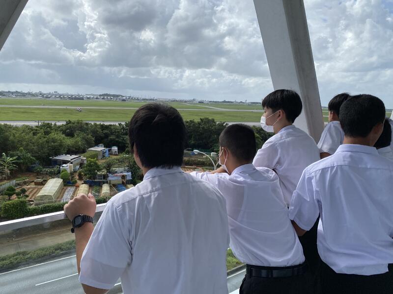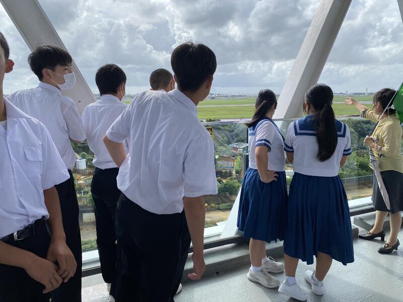 搭乗まで時間があったので、展望デッキに行って飛行機を見学しました。初めて飛行機に乗る生徒もおり、大興奮でした!