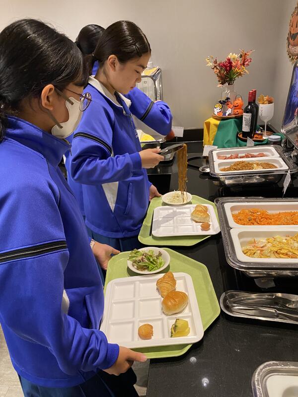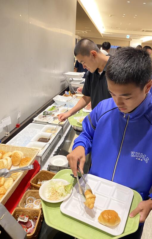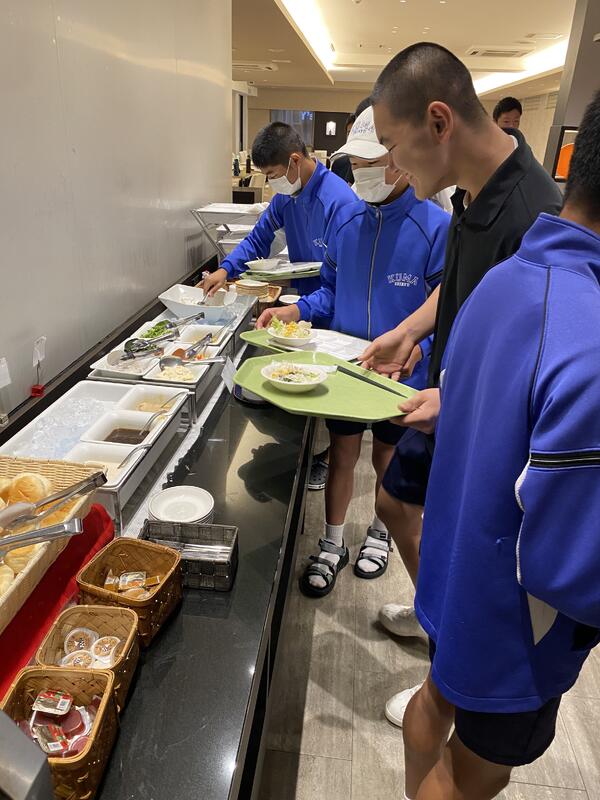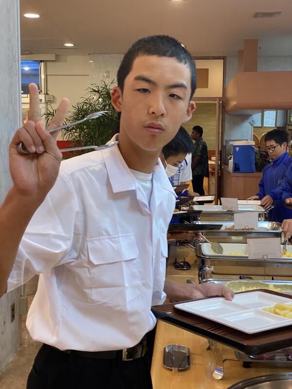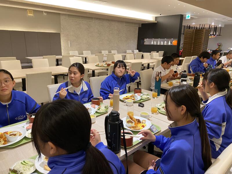 修学旅行2日目がスタートしました。朝食はビュッフェ形式で、生徒たちは朝から美味しいご飯を食べました!