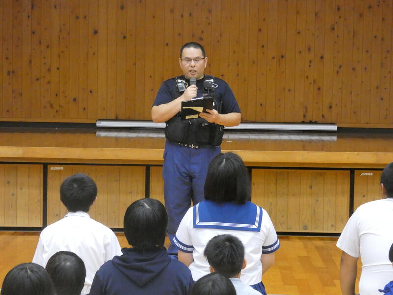 10月22日(水)の6時間目に清流タイムが実施されました。今回は、北校舎の安全点検を1年~9年までの縦割り班で行いました。講師として、下球磨消防署西分署の消防士3名に来校いただき、安全点検の視点のお話をいただきました。とても分かりやすく、素晴らしいお話をいただき、児童生徒にとって安全点検の大切さが伝わる会となりました。