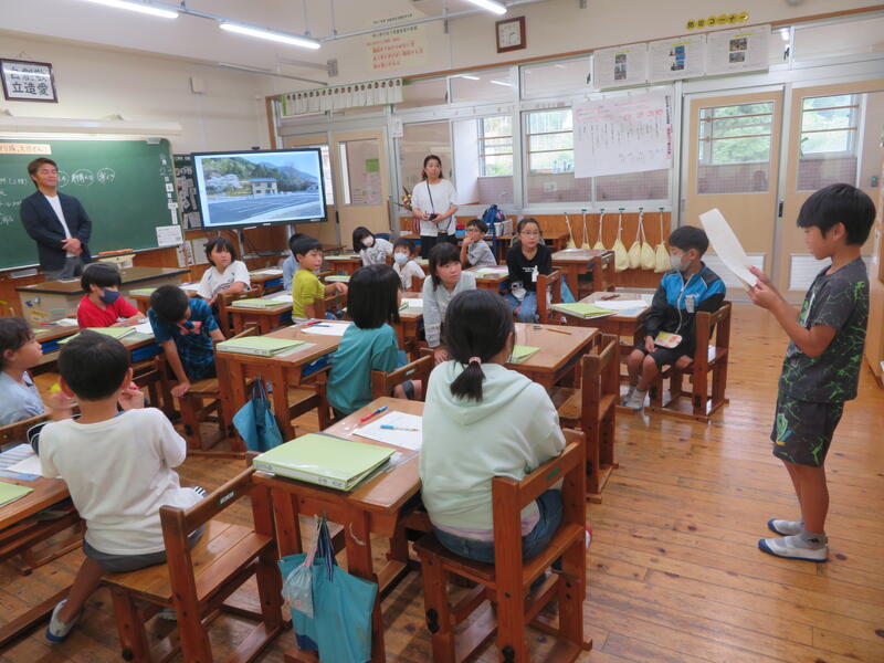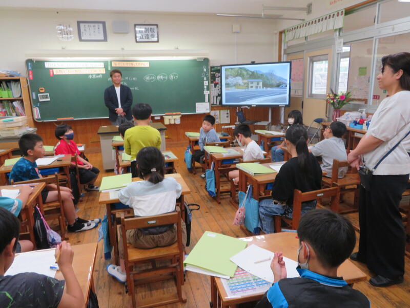 10月23日(木)に3年生は総合的な学習の時間に、「令和2年7月豪雨」について学びました。今回の授業では、保護者の上蔀さんに協力をいただき、当時の写真を示しながら、説明をいただきました。子どもたちも真剣に話を聞き、感想を述べることができました。