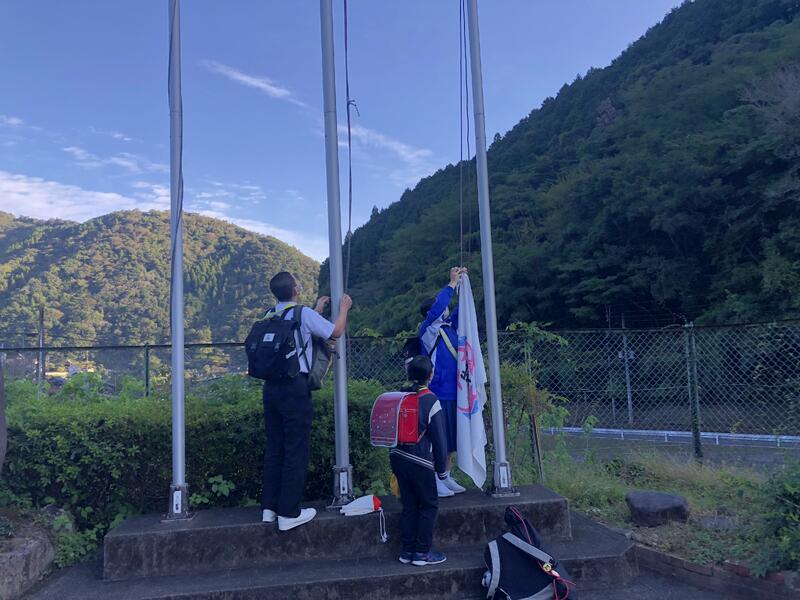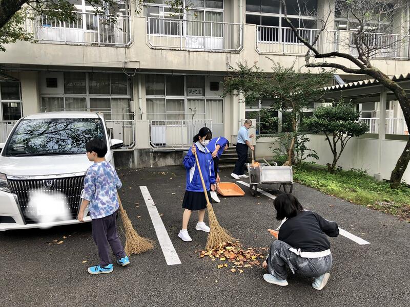 みんなで朝からせっせと落ち葉掃きをしています。高学年が手伝ってくれている光景も微笑ましいです。低学年も頑張ってます!