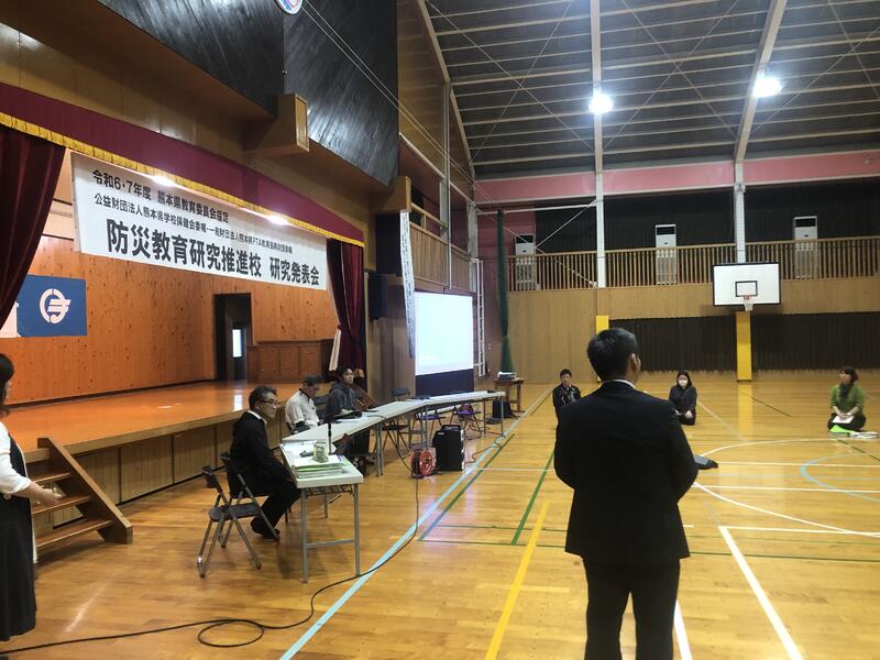 11月21日(金)に、防災教育研究推進校研究発表会を本校で行いました。令和6年度から2年間、熊本県教育委員会から指定を受け、五者連携による研究を進めてきました。