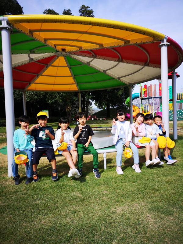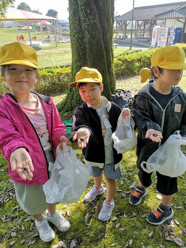 10月30日(木)に1年生は、あさぎり町に生活科の見学旅行に行きました。午前中は、岡留公園で秋探しや公園遊びを行いました。秋探しでは、どんぐり拾いを楽しみました。午後からは、南稜高校にて小動物との触れ合いを楽しみます。