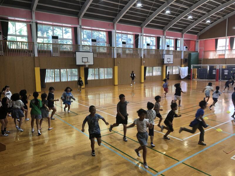 1stステージの子供たちが大声で逃げ回り、体育委員の先輩方が笑顔で追いかけ回っていました。