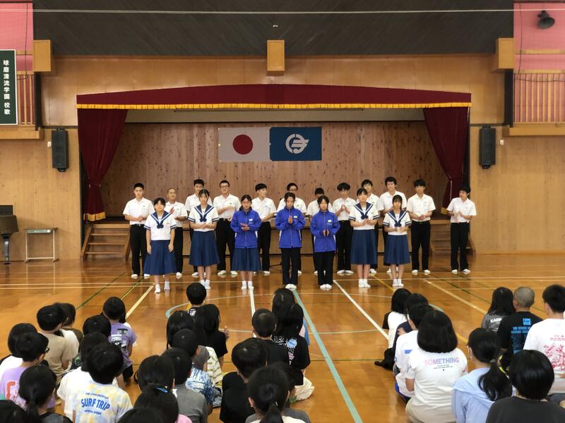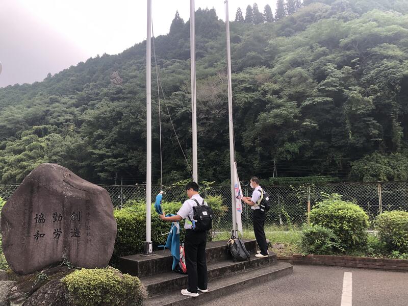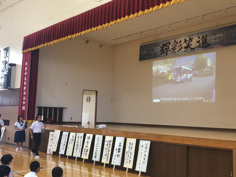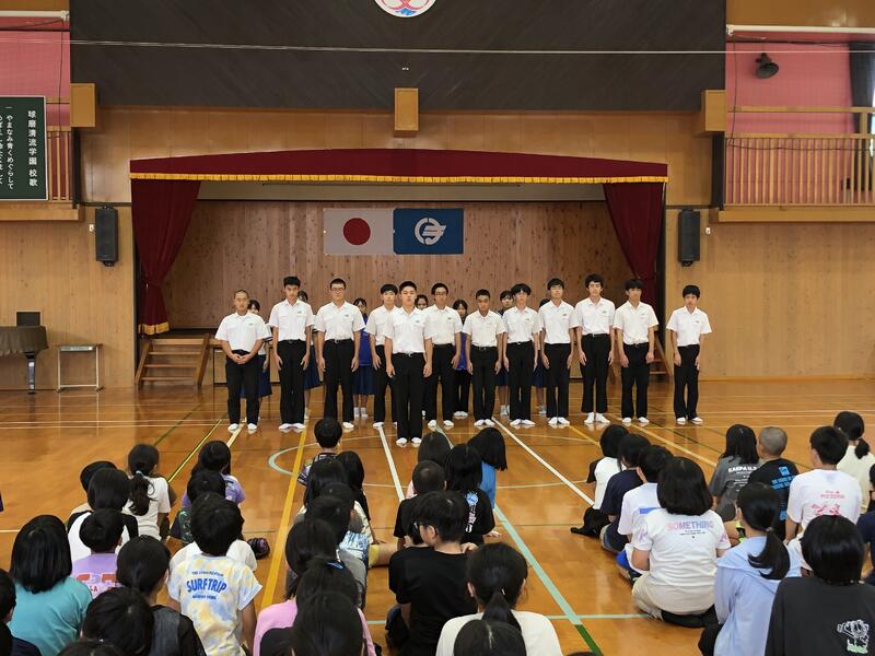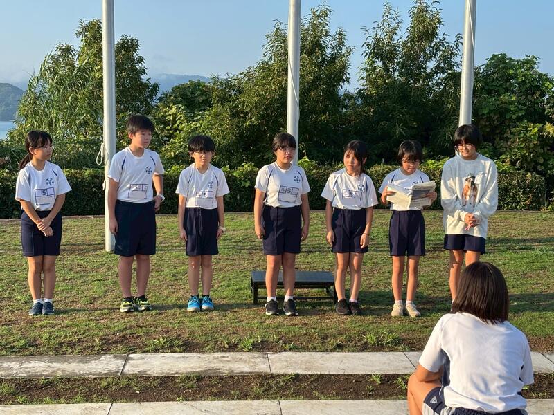 みんな元気に朝の集いに参加することができました。旗係や体操係など仕事をすることができました。他にも学校が参加していたので、球磨清流学園の学校紹介を行いました。