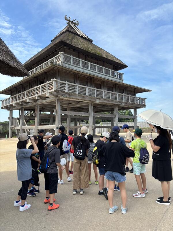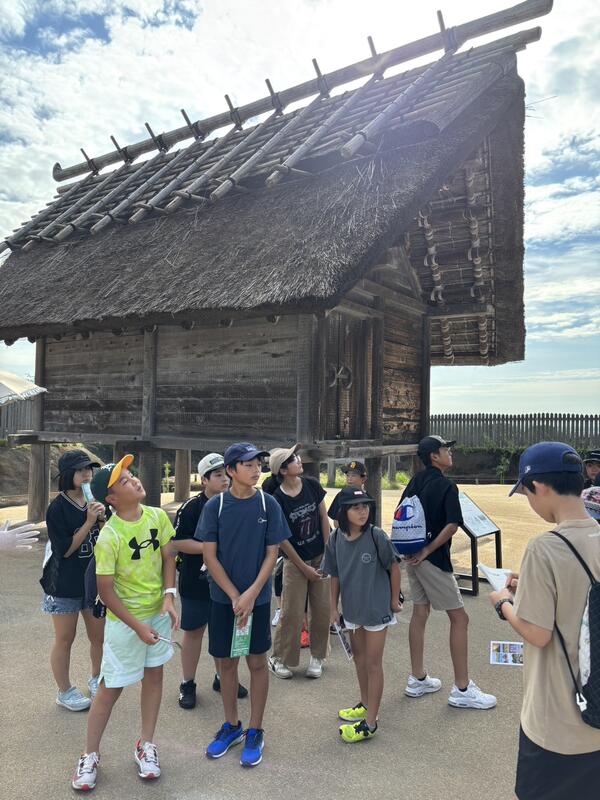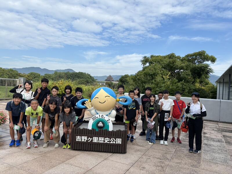修学旅行の最初の目的地、佐賀県の吉野ケ里遺跡に到着しました。児童たちは古代の暮らしや文化に触れながら、貴重な学びの時間を過ごしています。しっかり学んでほしいです。