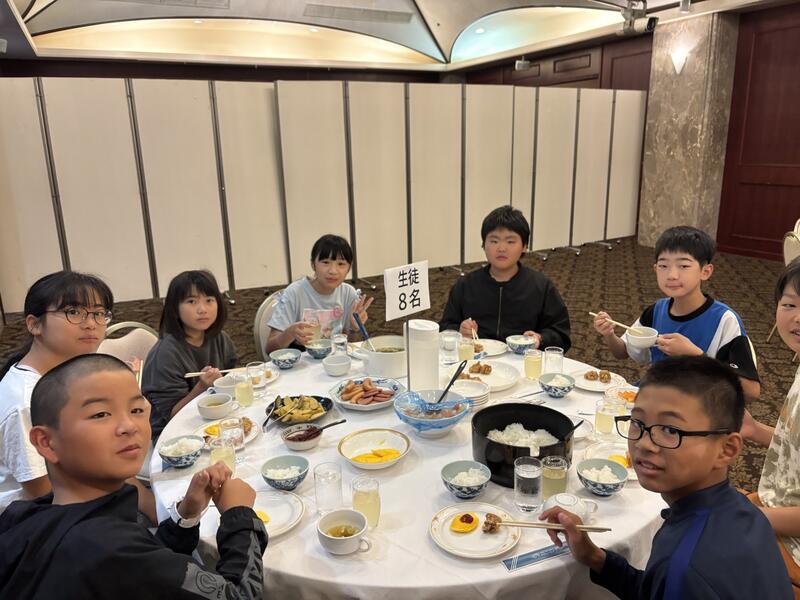 6年生は長崎市内のホテルに無事に到着し、夕食をとりました。夕食では、大皿に盛った料理が何皿も出てきて、お互いに譲り合いながら、食事を楽しみました。この後、稲佐山の夜景を見に行く予定です。楽しみですね。