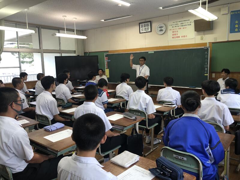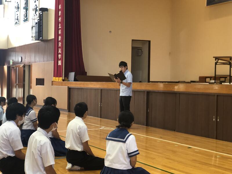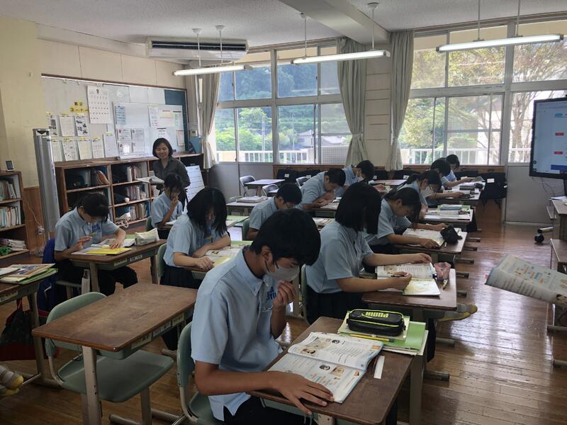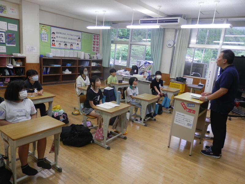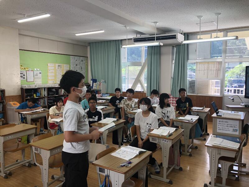 そして、放課後は、9年生を対象とした村教育委員会主催の地域未来塾が開塾しました。本日は開塾式を行い、講師の中村先生が早速授業を実施されました。