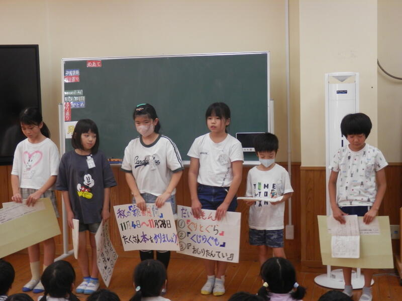 10月9日(木)に北校舎において、10月の集会を行いました。今回は、図書委員会の発表と酒井先生の説話でした。図書委員会は、読書の大切さを話して、各学年に応じたクイズを出題しました。児童は、体を乗り出して、クイズに答えていました。酒井先生は、子どもの時に好きだった本を照会してくださいました。11月も楽しみです。