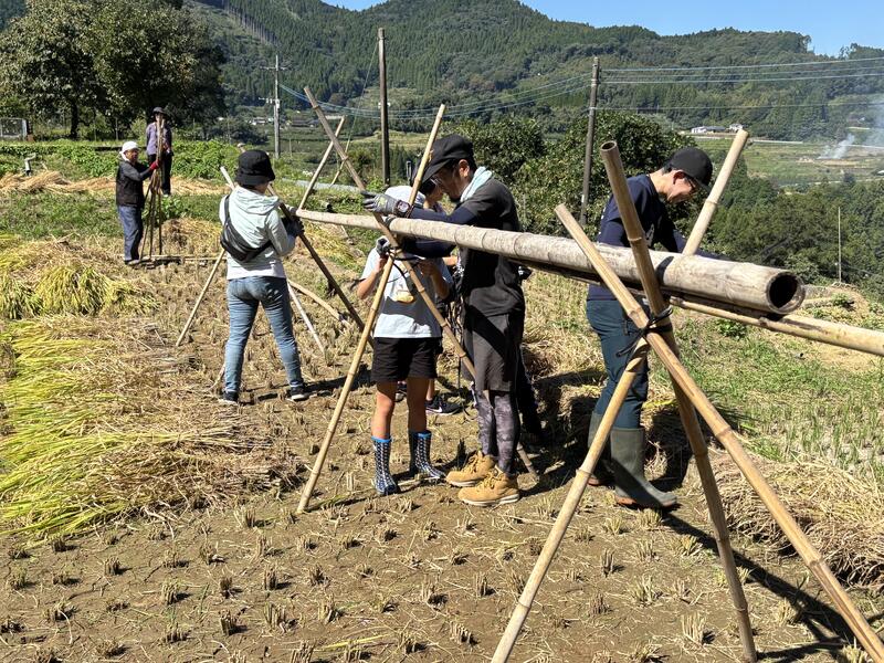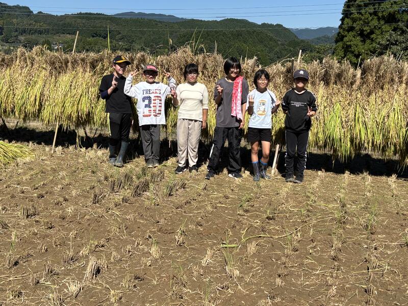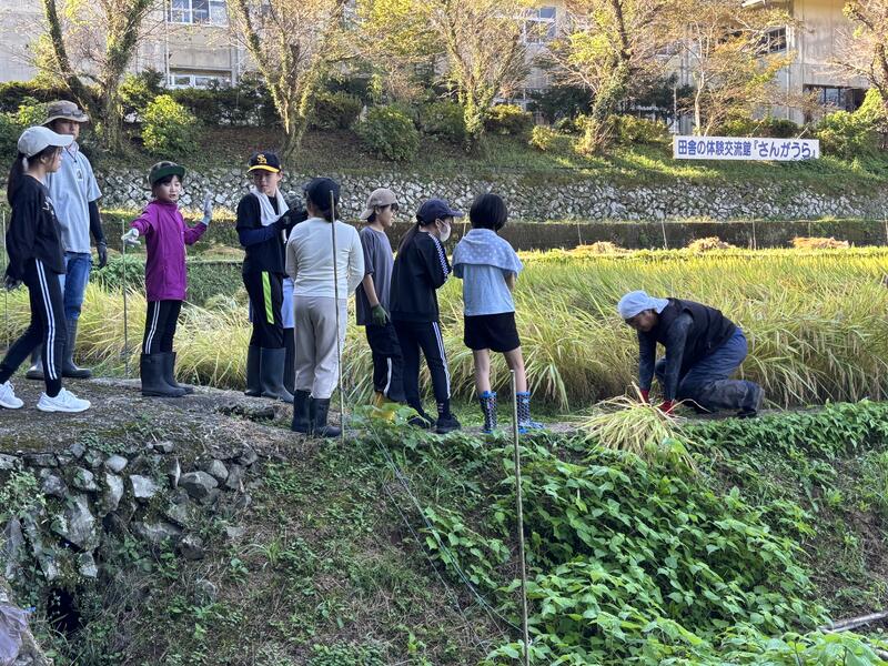 10月12日(日)に5年生の学年行事で稲刈り体験が田舎の体験交流館の「さんがうら」の近くで実施されました。この学年行事は、6月に5年生が田植えをしたものが、10月の稲刈りに結びついたものです。今回は、稲を刈り、竿かけを行いました。晴天の中、保護者の方の協力を得て、進めることができました。ご協力、ありがとうございました。